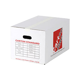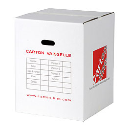 Carton renforcé en double cannelure. Equipé de deux poignées pour faciliter la manutention. Grille de repérage sur un coté permettant d'indiquer la pièce de destination.